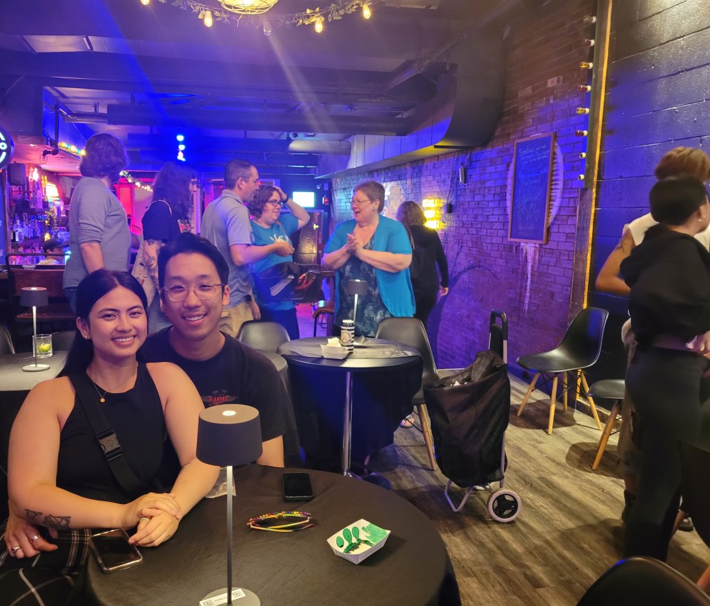 What is Music Bingo, you ask? It is just like regular bingo except a lot more fun and interactive. In fact, it is WAY more entertaining than it should be! Numbers on your bingo cards are replaced with songs. The host plays 30 seconds to one minute each of songs from all genres and styles, and the players dab along until someone shouts BINGO. The goal is not to trick people so if players need a hint, the host is more than happy to oblige. Up to 5 rounds are played during the 90-minutes.